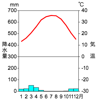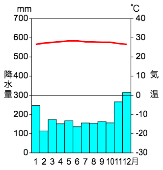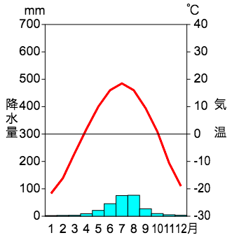 下の雨温図は、ア〜エのうちどの地域のものでしょうか?
