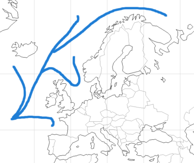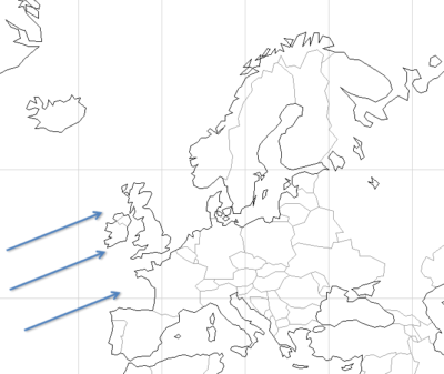 ヨーロッパの西側の、偏西風や北大西洋海流の影響で、高緯度の割に