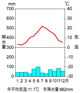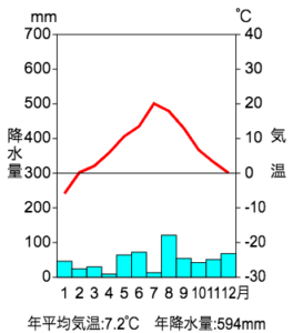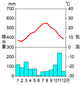 下の雨温図は地図のうちどの地域のものでしょうか?