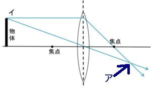 実像ができる仕組みを模式的に表したものはア、イのどちらでしょうか?