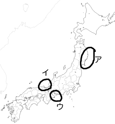 リアス式海岸のうち三陸海岸はアからウのうちどこでしょうか?