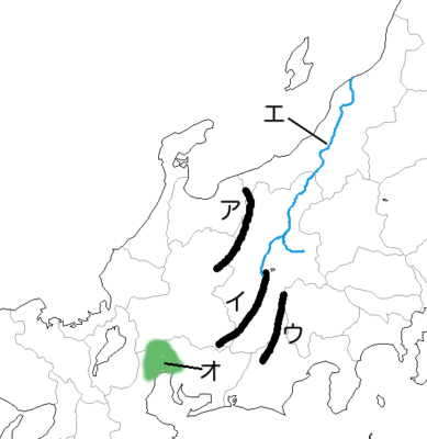 ア、イ、ウ、の山脈はまとめてなんと呼ばれていますか?