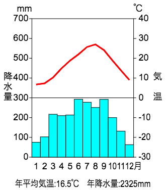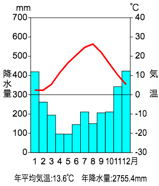 下の雨温図の場所に当てはまるのはア〜ウのうちどこでしょうか?